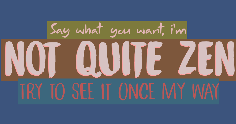 Enough about my choice of music – Not Quite Zen is a 3 font family (with Italics); two brush fonts and a script. They go together really well, so let your creativity run wild!